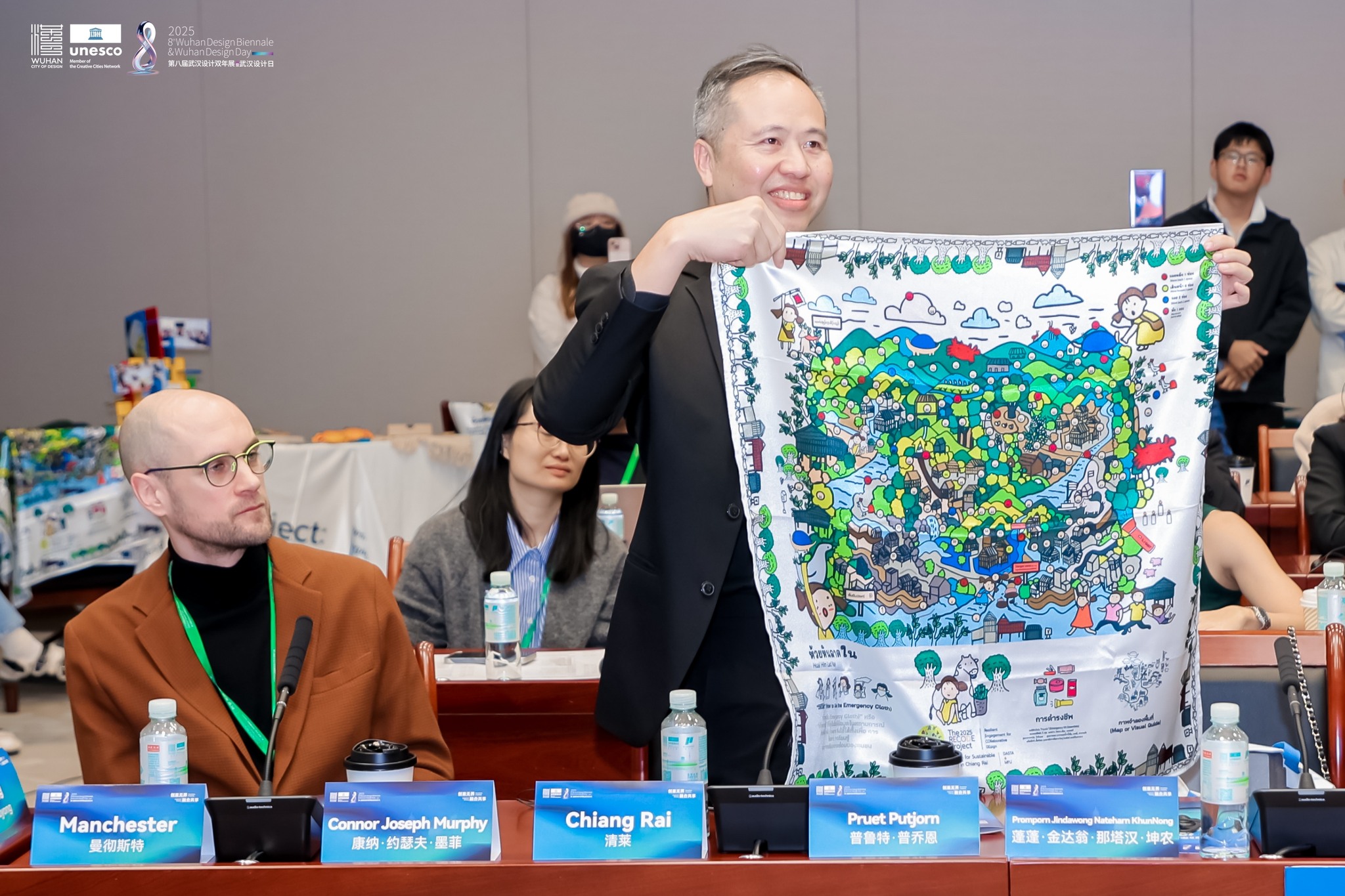 Additionally, Ms. Promporn Jindawong Nateharn, CEO of Chiang Rai City Development (CRCD) Company Limited and lead coordinator of Chiang Rai Creative City of Design, represented the Chiang Rai team in presenting the initiative The RECODE Project: Collaborative Design for Sustainable Disaster Recovery in Chiang Rai. The RECODE Project is part of the collaboration between Mae Fah Luang University and DASTA to advance Chiang Rai Creative City of Design under the UNESCO Creative Cities Network, promoting the concept “Design for Resilience”—using the power of design to build community resilience and sustainability. The project applies the Design Thinking framework to develop disaster-prone highland areas—specifically Huai Hin Lad Nai Village, Wiang Pa Pao District, Chiang Rai Province —to raise disaster-risk awareness and promote long-term sustainable solutions.