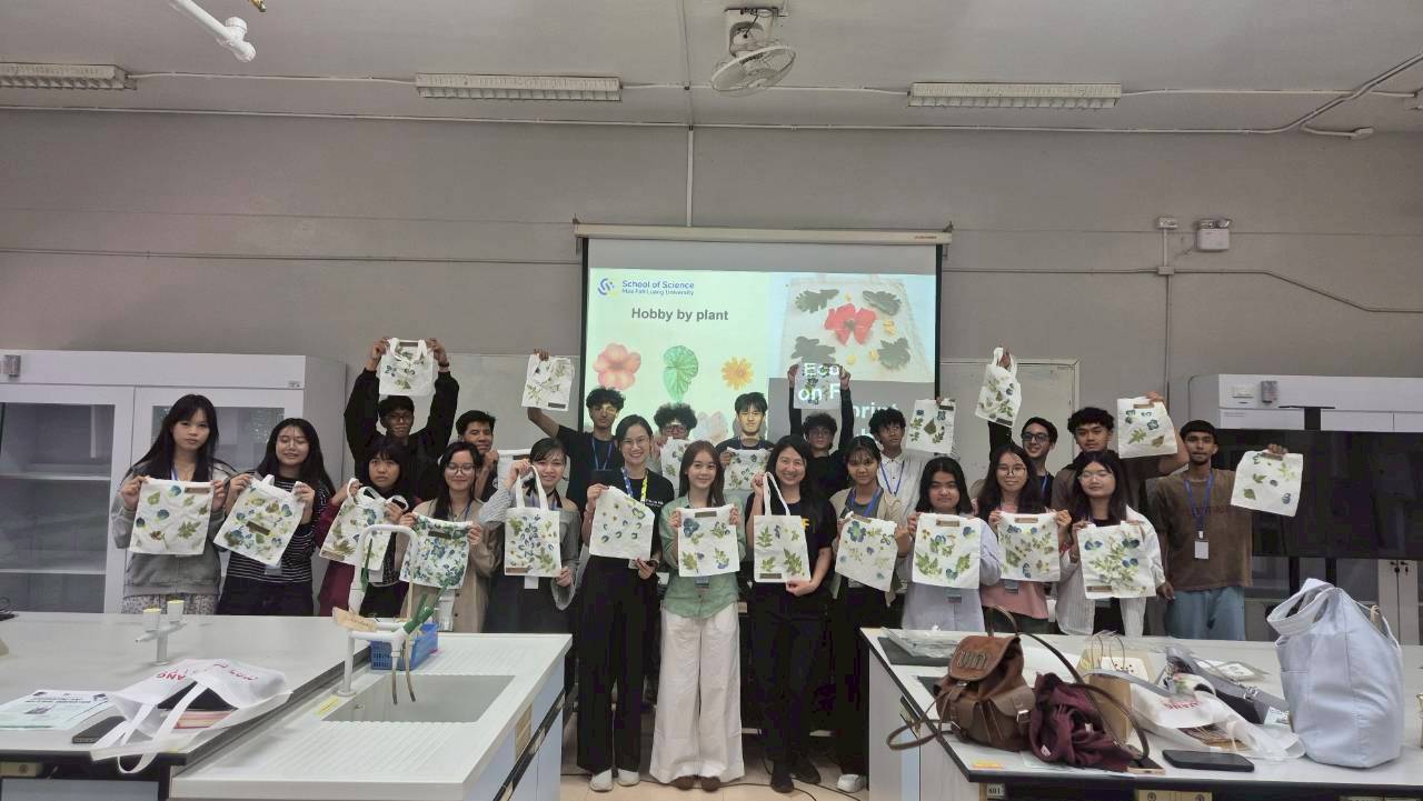 •    Eco-printing (School of Science): Students discovered how to transform natural elements into eco-friendly products using three core disciplines: Applied Chemistry, Bioscience, Materials Engineering. Using heat and pressure, they transferred natural plant pigments onto fabric to to create their own personalized canvas bags.