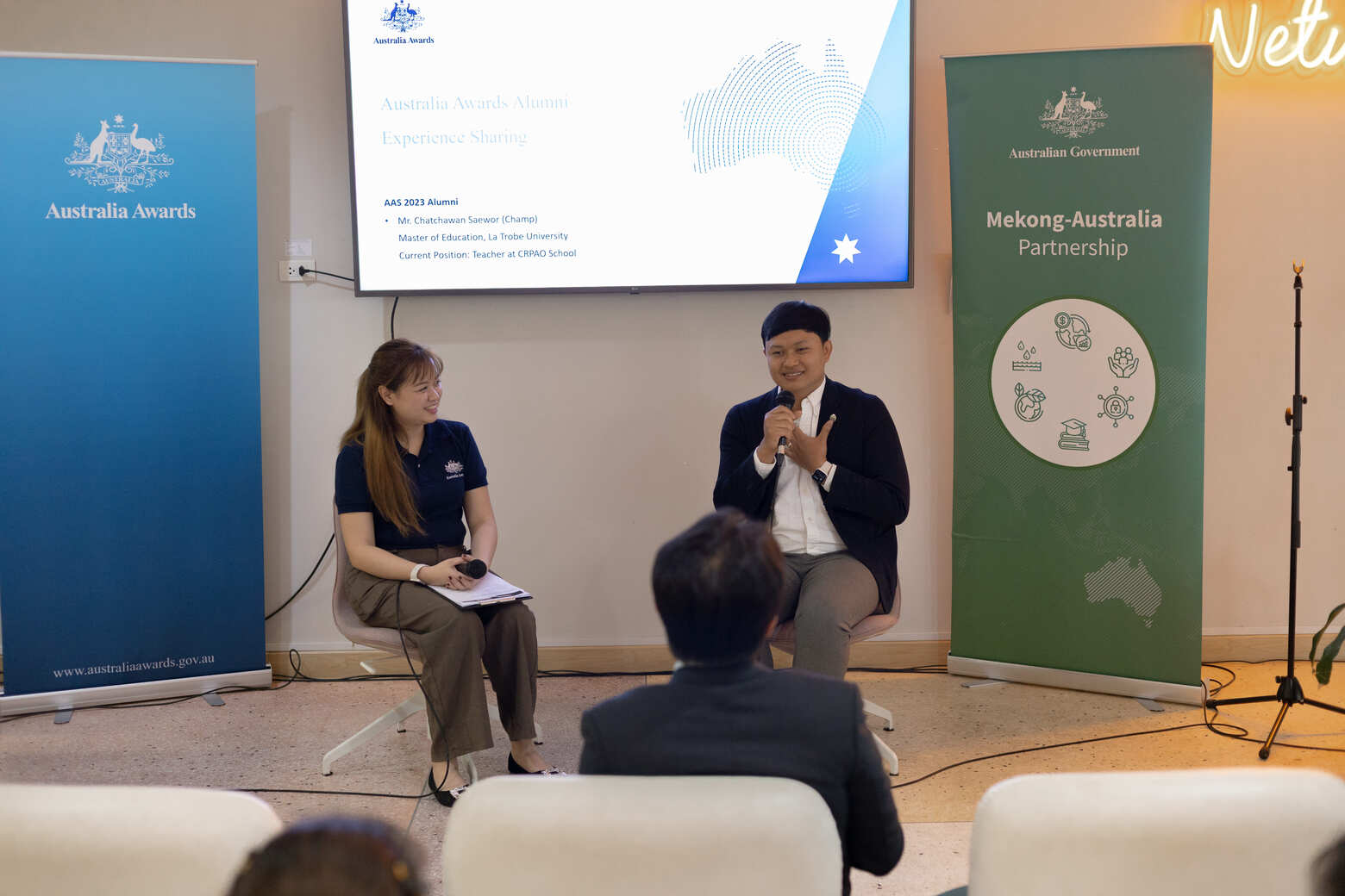 The programme featured an AA-MAP Scholarships Intake 2027 information presentation, delivered by Ms. Pornpitcha Singhadecho, Award Manager, who provided details on scholarship benefits, eligibility criteria, and application procedures. The event also included an alumni experience sharing session by Mr. Chatchawan Saewor, an alumnus from the 2023 intake (Master of Education, La Trobe University) , who shared insights into academic life and living in Australia. A Q&A session followed, allowing participants to seek advice on the application process, interview preparation, and student life in Australia.