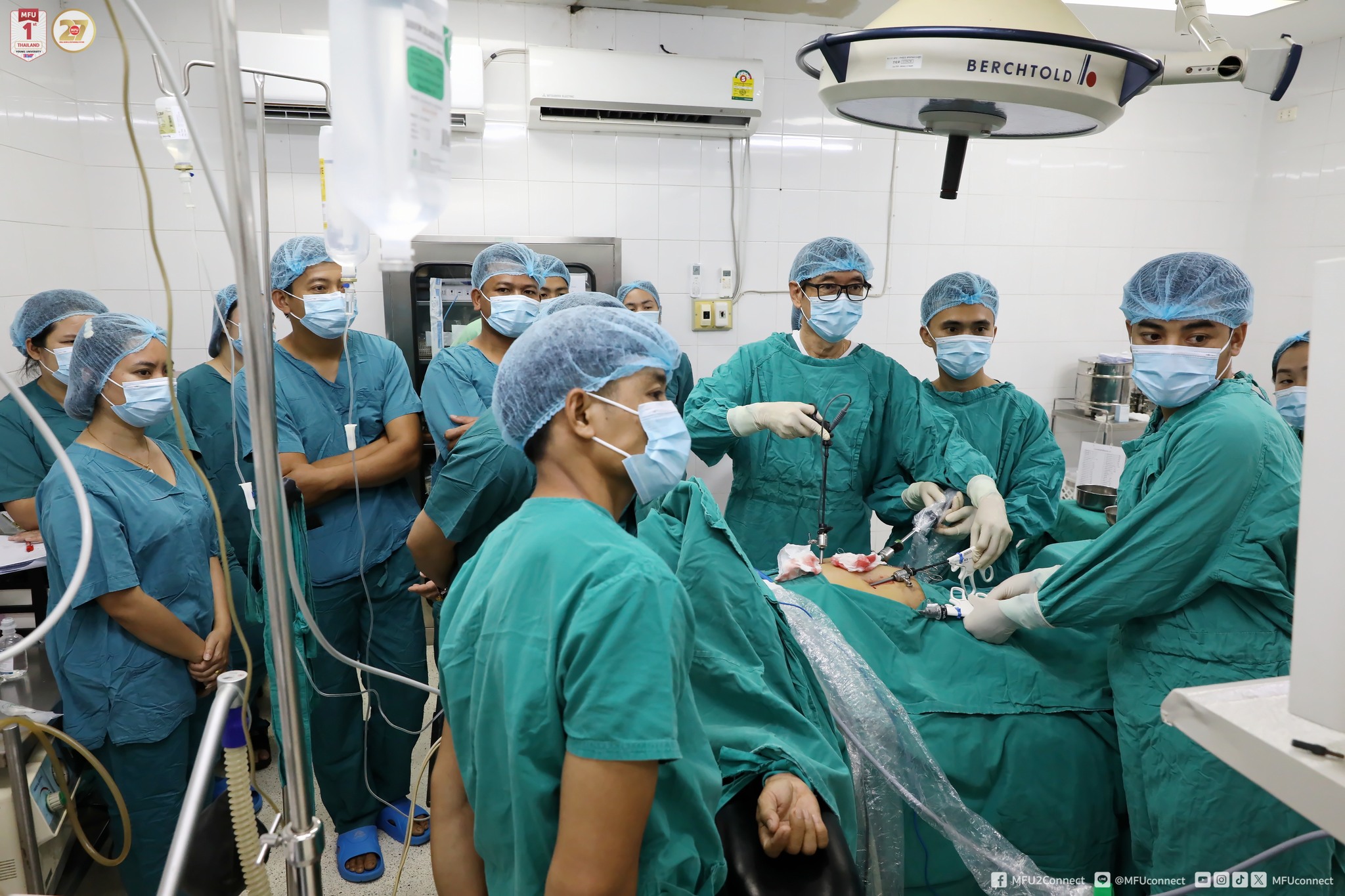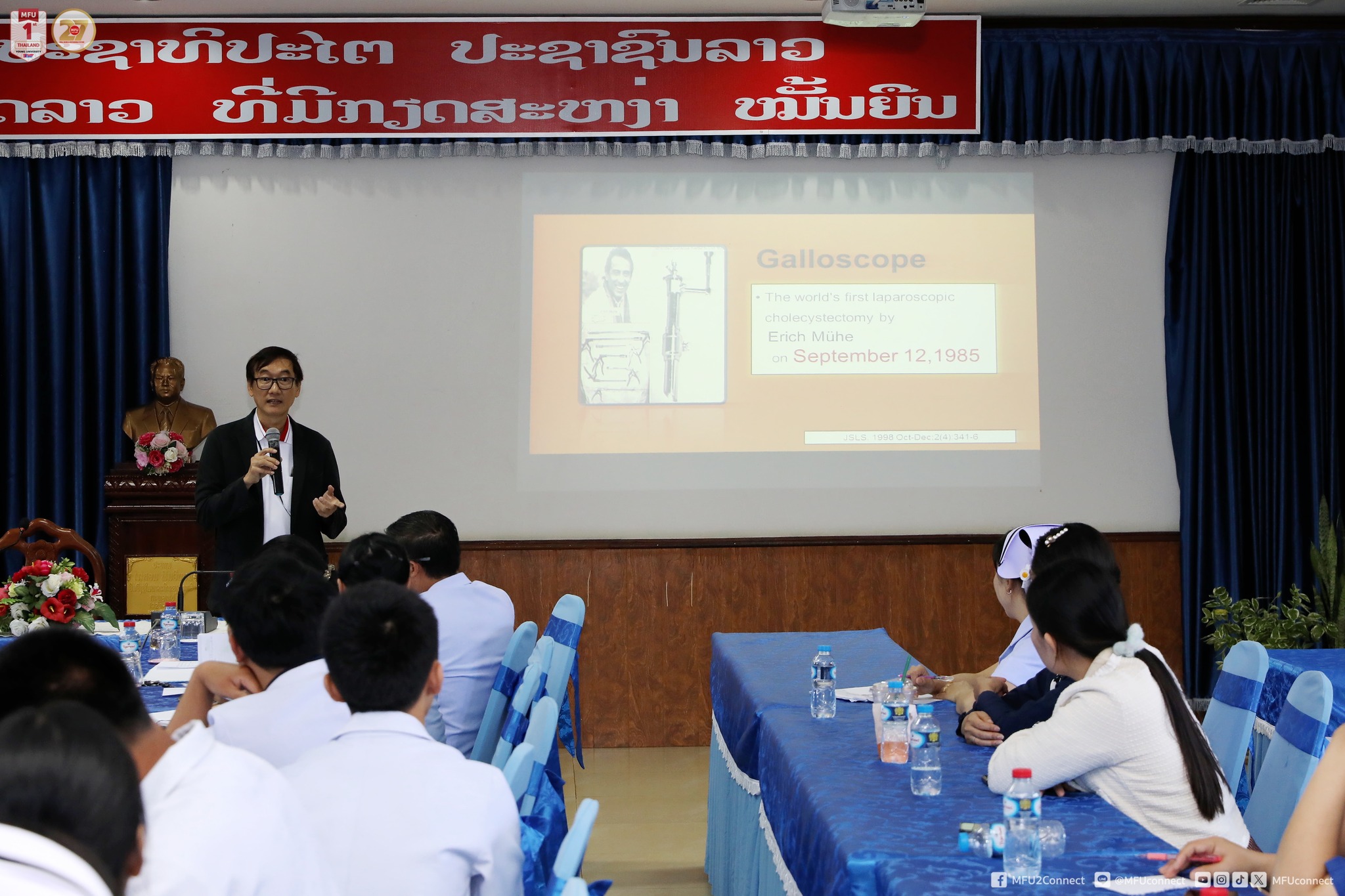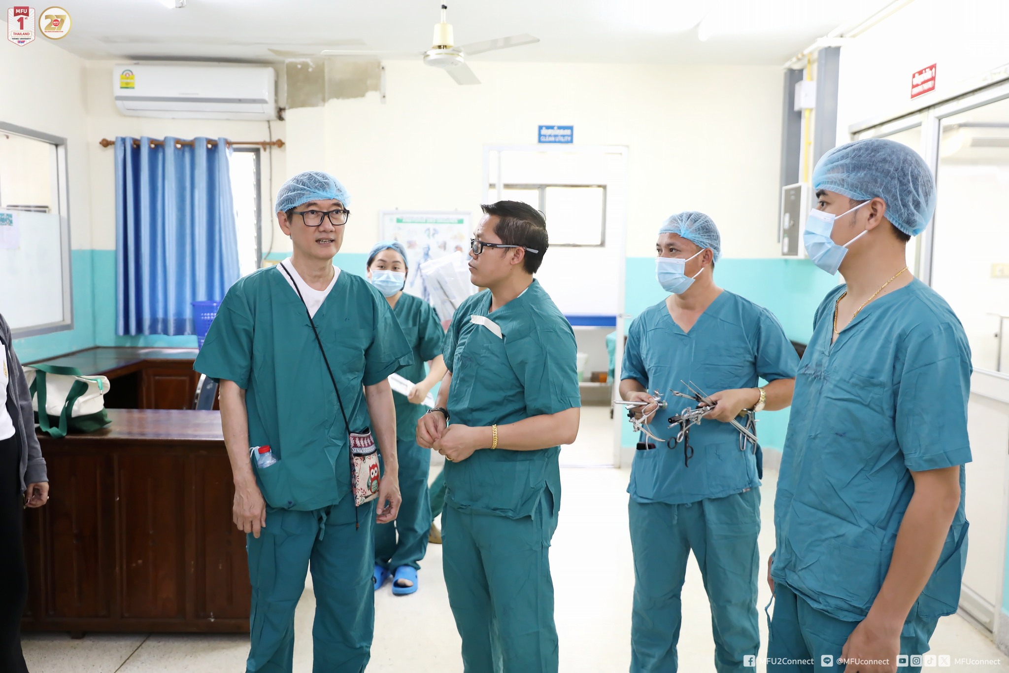 On 19 - 20 March 2026, the team of academic staff from the School of Medicine, Mae Fah Luang University (MFU), led by Dr.Phichai Phongmanjit, a specialist in surgical oncology (Gl tract) and general surgery (inguinal hernia), conducted a specialised training, demonstration, and surgical programme on inguinal hernia repair under local anaesthesia at Bokeo Provincial Hospital, Lao People's Democratic Republic (Lao PDR). The programme aimed to provide academic services to medical personnel in Lao PDR and strengthen healthcare collaboration within the Greater Mekong Subregion.